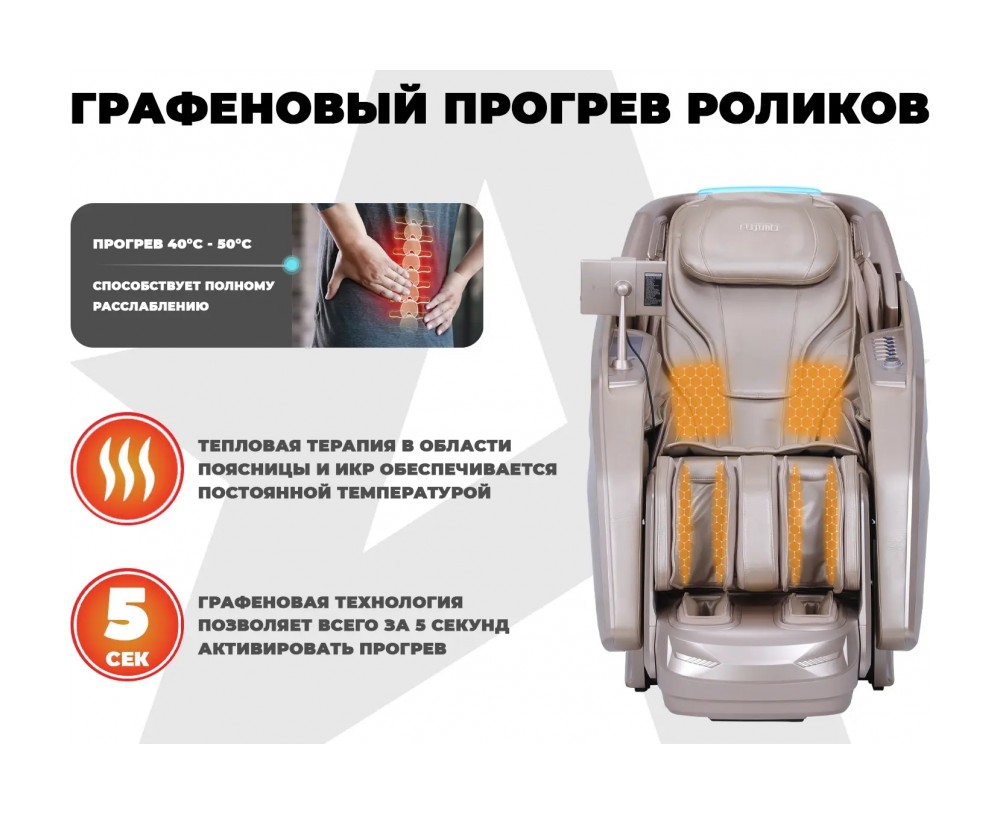 • Моментальный СПА прогрев икр и поясницы создается с использованием графеновой технологии